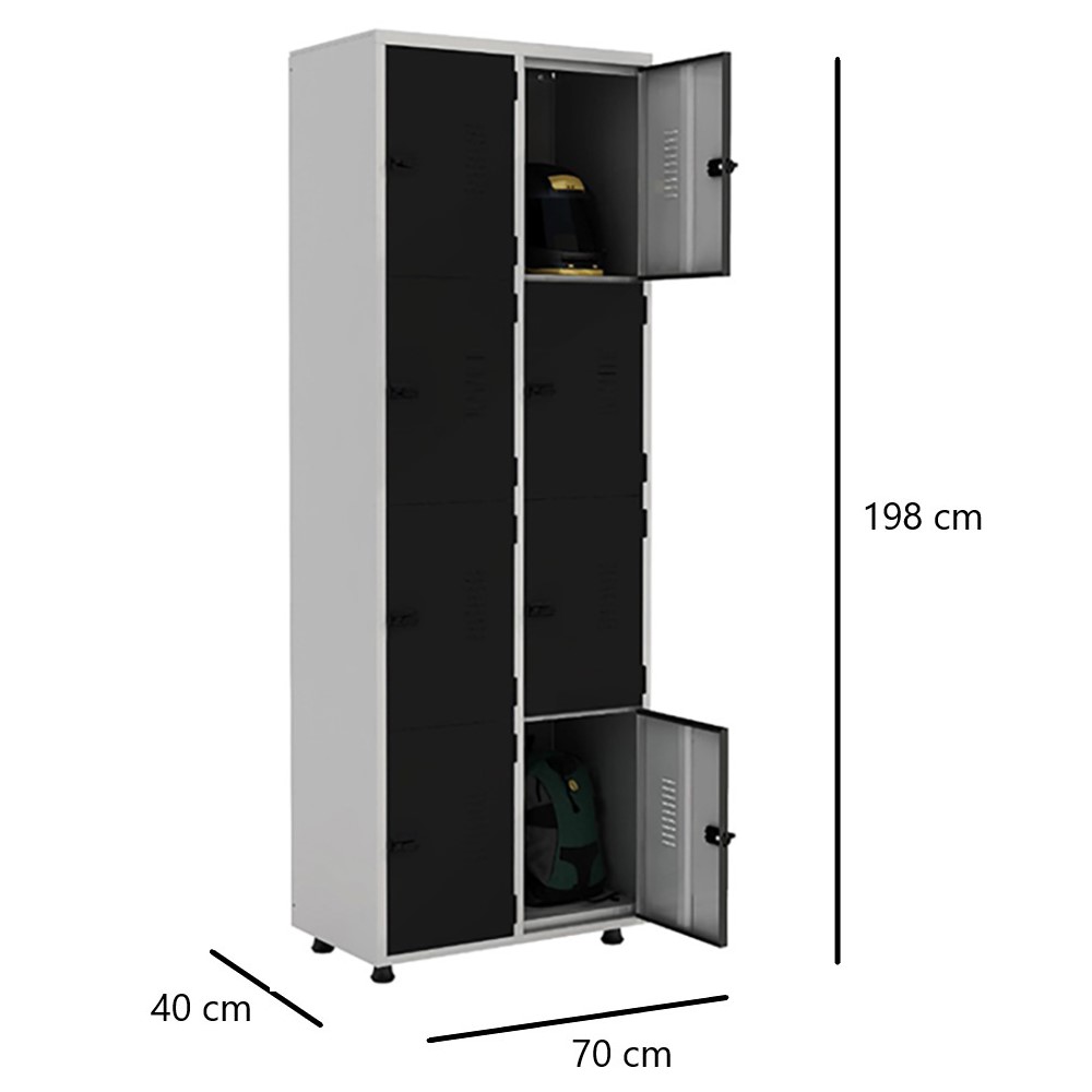 Armário Locker Roupeiro Aço 08 portas Academia Guarda Volume Organizador Fechadura EA702007 Preto